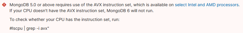 - Run the below command to see if your CPU has the AVX instruction set